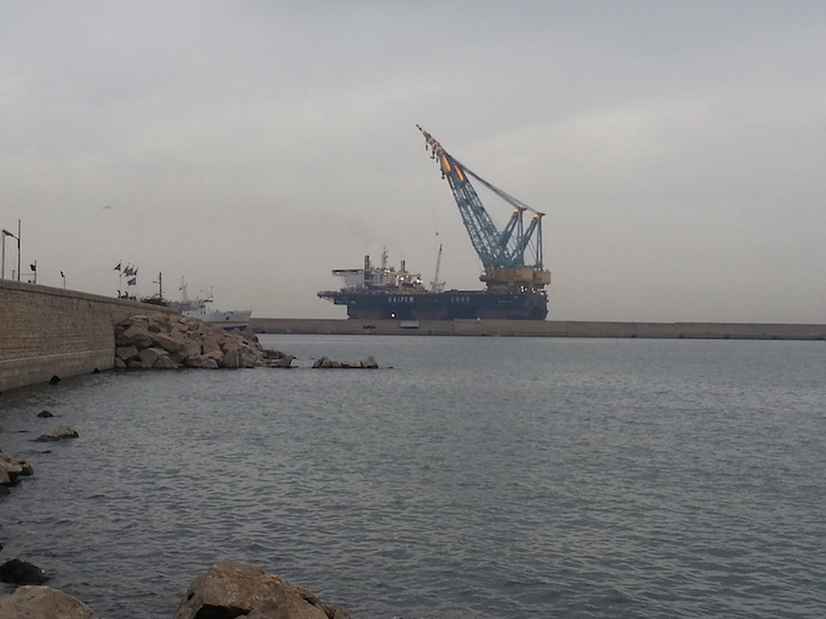L’imponente nave cantiere ha trovato una troupe video di Edithink pronta ad attenderla per filmare tutte le manovre in porto.